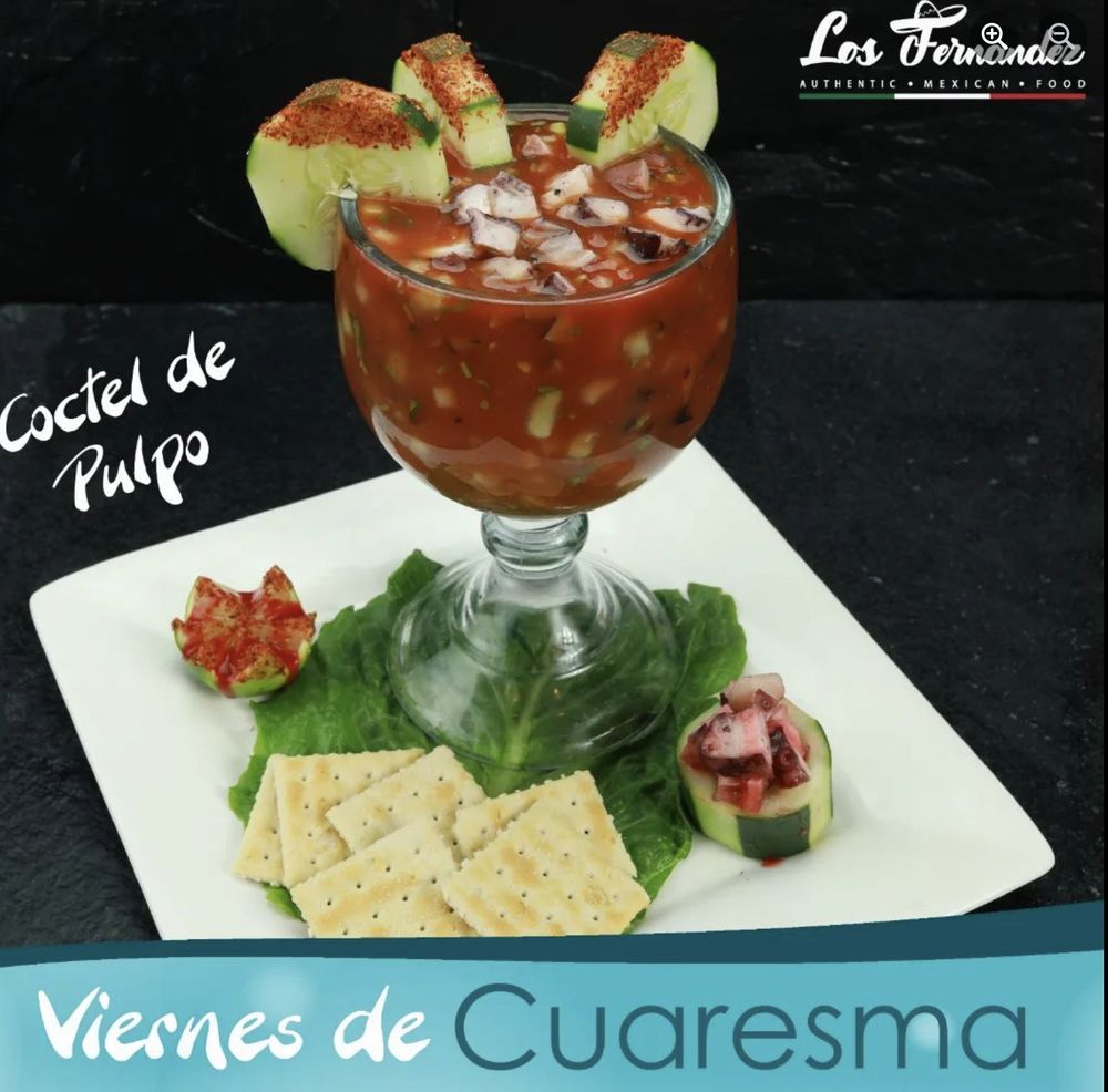 Octopus with chopped cilantro, onions, tomatoes and avocado. Mixed in our homemade cocktail sauce, and served in a special cocktail glass.